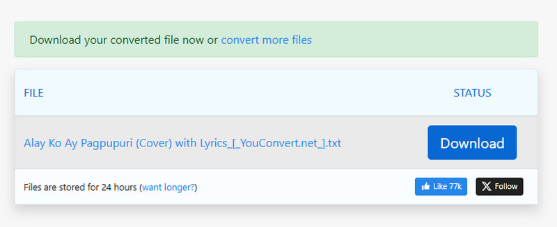 Schritt 3. Gehe in die untere rechte Ecke der Oberfläche und klicke auf Download, um die Songtexte auf deinem Computer zu speichern.